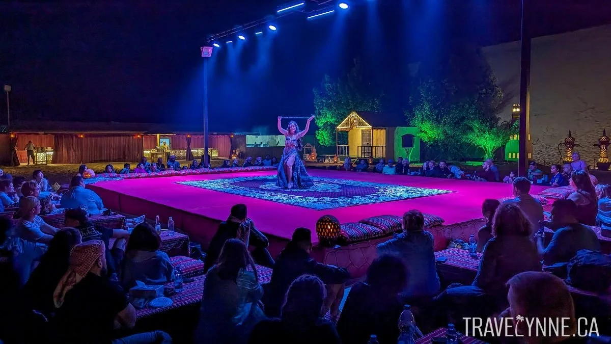 As night fell, we enjoyed a belly dance show with a super lovely performer. The BBQ dinner offered a taste of local cuisine, with Arabic sweets and Bedouin coffee to top it off. You can also opt to purchase alcoholic drinks if you want, starting at 25 Dirhams each, or about $6.80 USD / $9.10 CAD.