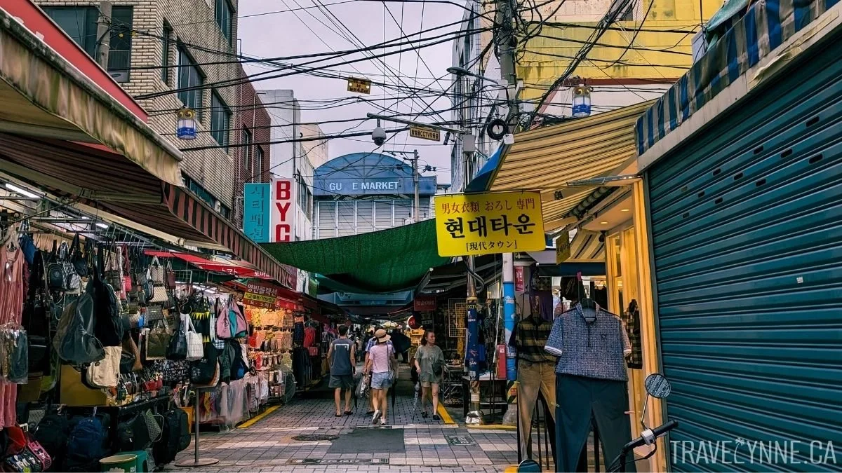 Shop where the locals shop at Gukje Market. It's a covered maze of goodies where you can haggle for anything from vintage clothes to K-pop merch to food items and alcohol. Each alleyway holds a new surprise – it's like a treasure hunt in the heart of Busan. There is also a section full of street food, with plastic stools lining food stalls, like those listed above at BIFF Square.