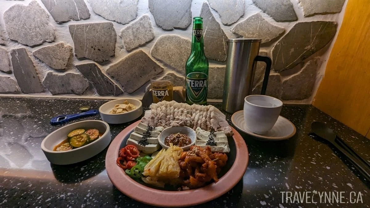Note for Vegetarians: If you are a vegetarian or halal, it will definitely be a struggle here as all restaurants are meat heavy. Learn more about that and my suggestions for vegetarians in my Guide to South Korea.