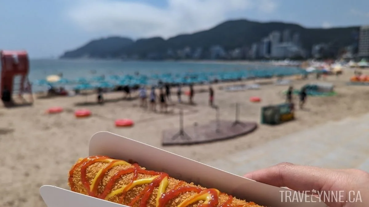The ride is only about 20-30 minutes end-to-end, but the views are beautiful. Start your journey from Mipo Station near Haeundae Beach, make a stop at the Cheongsapom Daritdol Skywalk observation deck, and then continue on to the last stop, Songjeong Station, where you can grab a Korean corn dog and enjoy more rest in the sun on the beach.